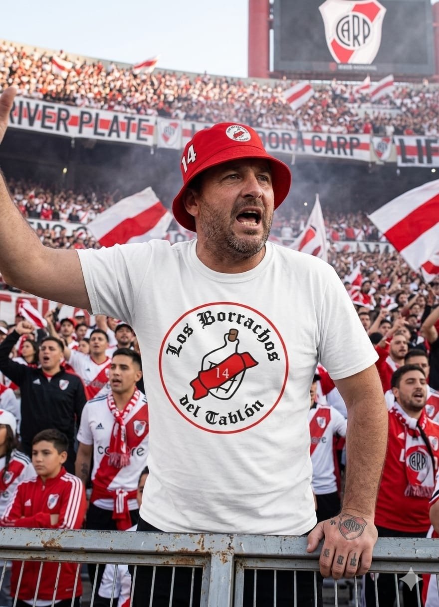 El Combo «Aunque ganes o pierdas» incluye Remera Clásica de Los Borrachos del Tablón confeccionada en algodón. Con una estampado en el frente con el logo de la damajuana, el número 14 y la letra gótica de la hinchada de River, en las mangas el 14 y la bandera Argentina, estampado en Vinilo DTF, y un Piluso Gallina ( el color en el envío depende del stock del momento).