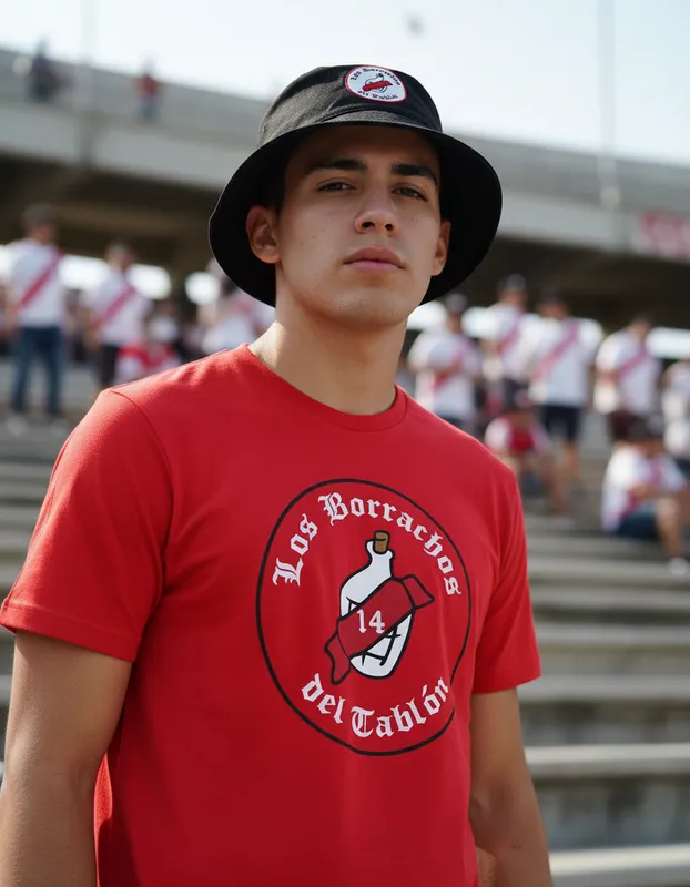 El combinado Gallina incluye Remera de Los Borrachos del Tablón color Roja, confeccionada en algodón. Con una estampado en el frente con el logo de la damajuana, el número 14  y la letra gótica de la hinchada de River, realizada en Serigrafía de alta calidad y Piluso Gallina estampado en DTF (el color es aleatorio, dependiendo disponibilidad de stock)