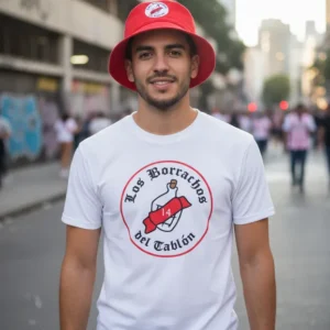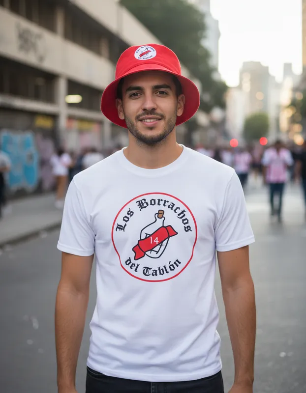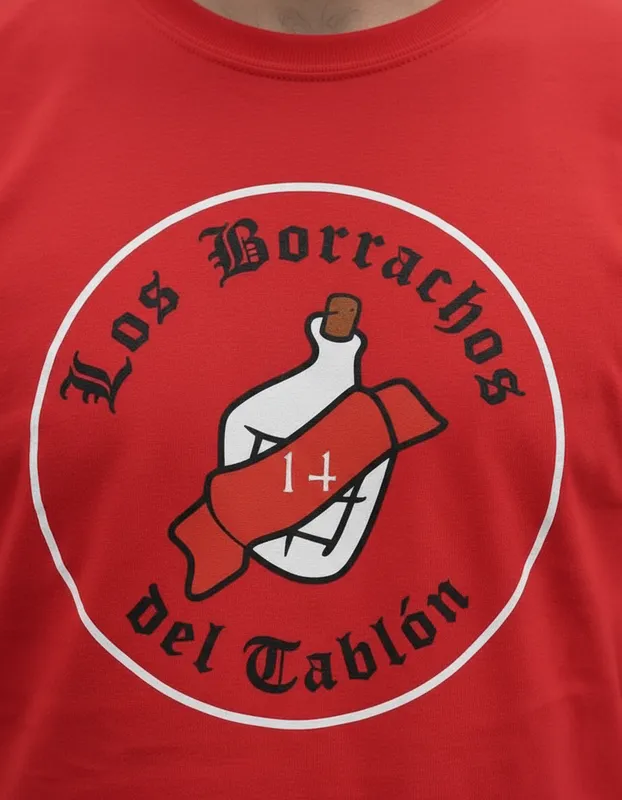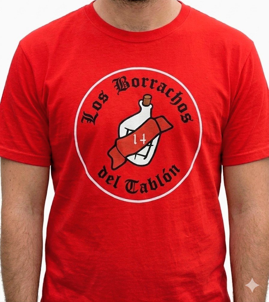 Remera de Los Borrachos del Tablón confeccionada en algodón. Con una estampado en el frente con el logo de la damajuana, el número 14 y la letra gótica de la hinchada de River, realizada en Vinilo de alta calidad.